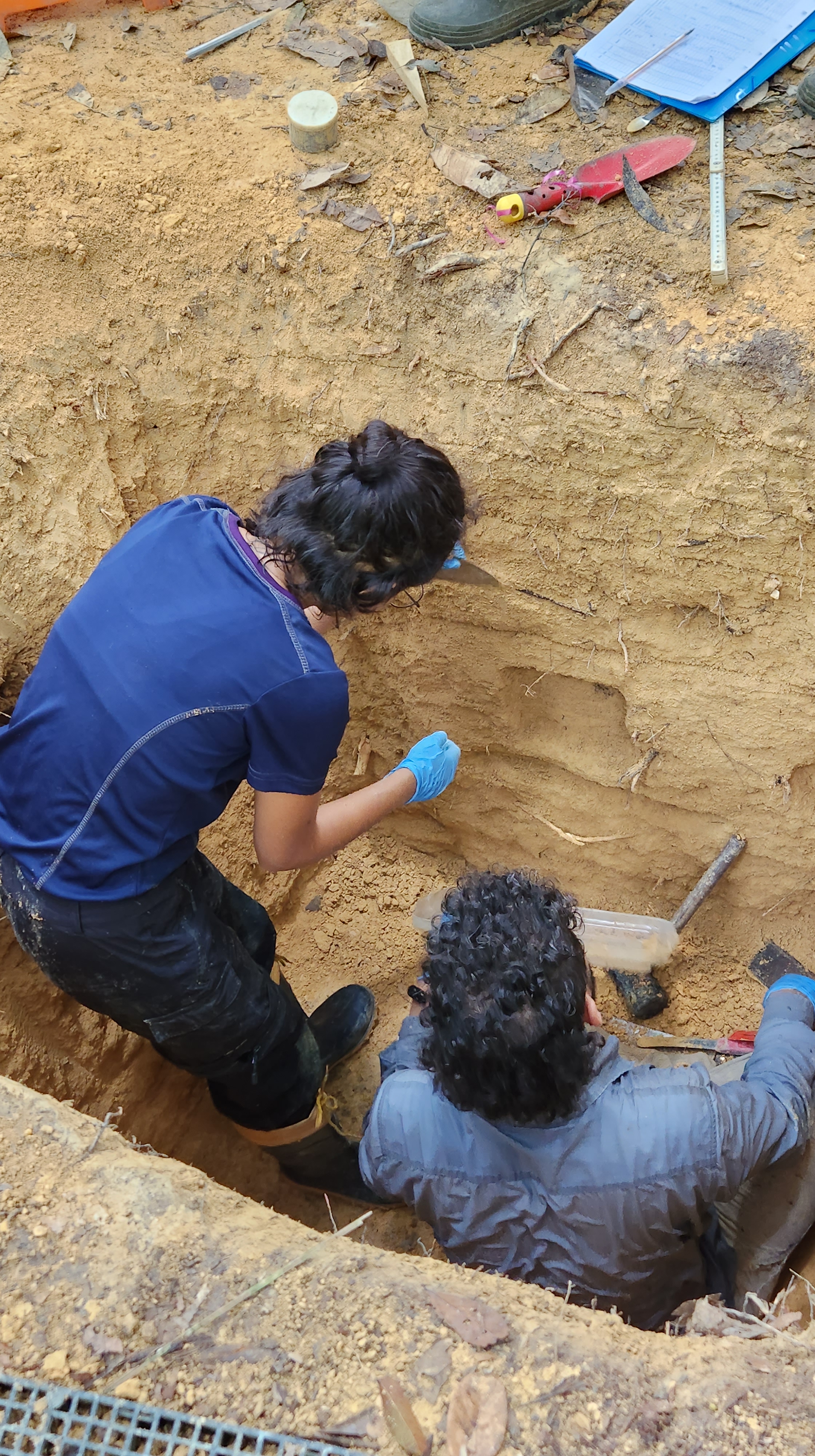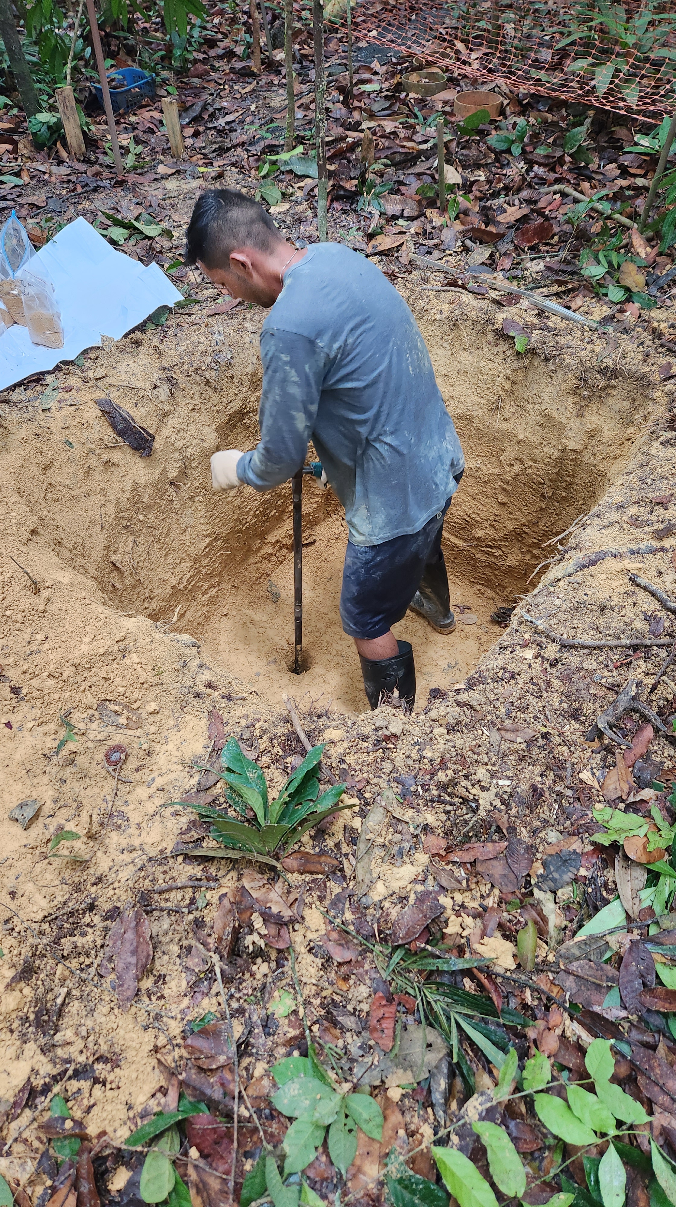 In October 2022, we took advantage of the pits being dug for the foundations of towers to sample soil and roots throughout a depth profile.